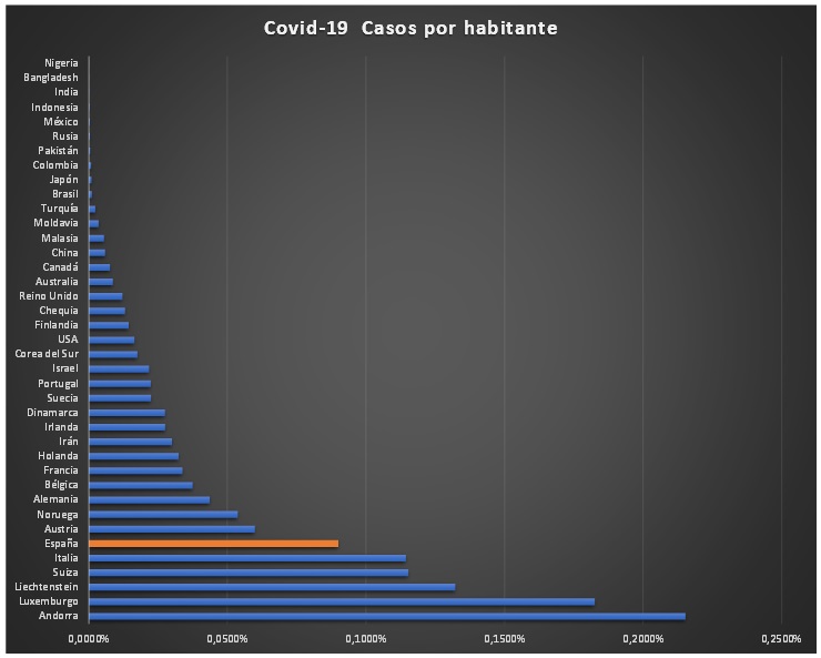 3.- Suiza, es un ejemplo del punto anterior. Más grande que Luxemburgo o Andorra, y con una ratio de contagio superior a Italia.