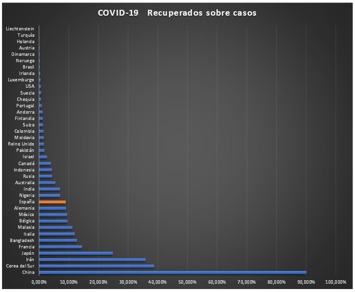 4.- Alemania, que a pesar del aumento incesante del número de casos, la ratio de mortalidad es muy muy baja. Se tomaron en serio los antecedentes en Asia y se aprovisionaron de material que ahora les está siendo muy valioso.